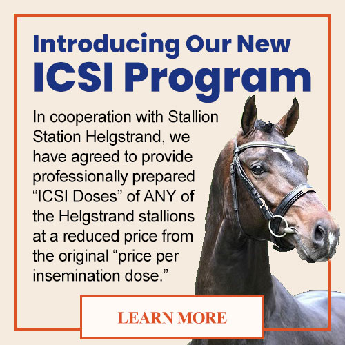 We offer ANY of the Helgstrand stallions via ICSI portions, professionally prepared. Our portions will be more than sufficient for the injection of all/multiple oocytes from the Ovum pickup (OPU).